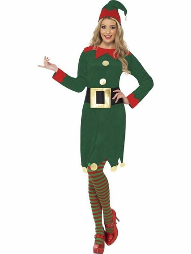 Smiffys-Elf Costume Green With Dress Hat & Belt< >Red/Green< >S< >Adult< >