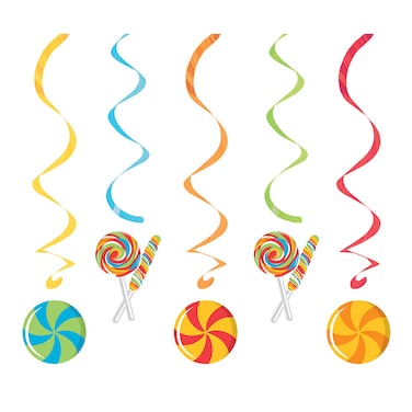 - Creative Converting Sugar Buzz Dizzy Danglers Set includes 5 assorted hanging decorations per package. Swirled streamers with old fashioned candy cutouts at bottom. Each decoration measure 36 inch in length when hung. Create a fantastic party from beginning to end.