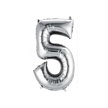 The Party Popper - 40 Inch Silver Color Number Balloons (Number 5)