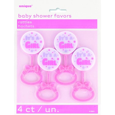 Unique- Baby Shower Favors Its A Girl Rattle Pink 4pcs