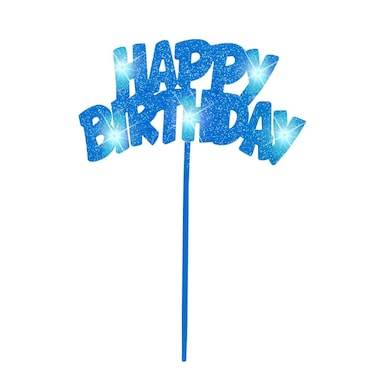 - Add some festive sparkle to any boy's birthday cake with this Blue Flashing Happy Birthday Cake Decoration. Featuring blue sparkly "Happy Birthday" text and flashing LED lights, this cake pick decoration is ideal for adding decorative flair to a boy's birthday party. This light-up birthday cake topper can put some sparkle and shine to sweet treats, or to a floral birthday bouquet or table decoration for an impressive centrepiece.