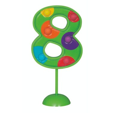 - This Flashing Number 8 Cake Decoration will bring a wow factor to your party! The colorful circles will flash colors in three different modes on this blue Flashing Number 0 Cake Decoration. Measures 8" high x 3" wide Made of plastic On/off button Batteries included