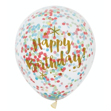 - 6 Foil Rainbow Balls Happy Birthday Confetti Balloons. Latex balloons measure 12 "when fully inflated (uninflated boat). Excellent for your Rainbow themed birthday party. Comes with 0.5oz of confetti and a small funnel. Coordinate with other Foil Ball Rainbow Happy Birthday Party Supplies from Unique