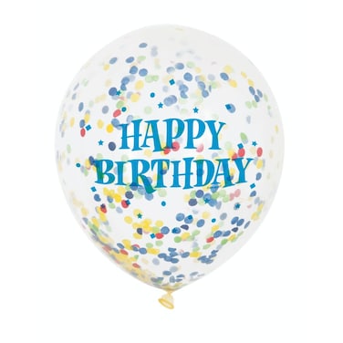 Unique- Happy Birthday Clear Balloon With Bright Confetti 6pcs 12in