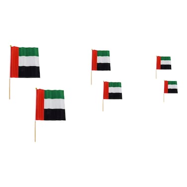 The Ahlan United Arab Emirates Flag Set includes six flags of varying sizes: small, medium, and large.