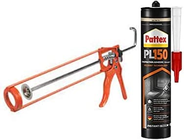SILICON GUN 1PC PATTEX PL 150 1PC Immediate adhesion – This extra strong, flexible wall adhesive can be used on multiple materials. It is ideal for mounting cupboards or for fixing skirting boards, railings or sockets. Indoor and outdoor – This waterproof adhesive is designed for indoor and outdoor use. Its versatility means it is suitable for use on porous and non-porous surfaces*. Strong adhesive – This white cartridge adhesive with high bond strength is resistant to water and also suitable for extreme temperatures (between -20°C and +80°C). Gun application – Intended for the more professional user, this waterproof strong glue is applied directly to the desired surface with an applicator gun. Package contents – Pattex PL150, solvent-free, professional adhesive with immediate tack and direct bonding, white, 1x380g Cartridge