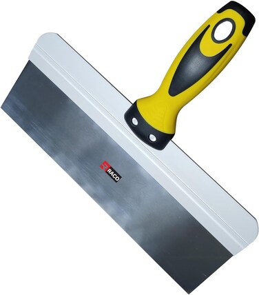 RACO Tower Putty Scraper 12-Inch Putty Knife with Soft Grip Handle Stainless Steel Drywall Taping Knife Yellow Handle Metal Putty Knife for Drywall Repair
