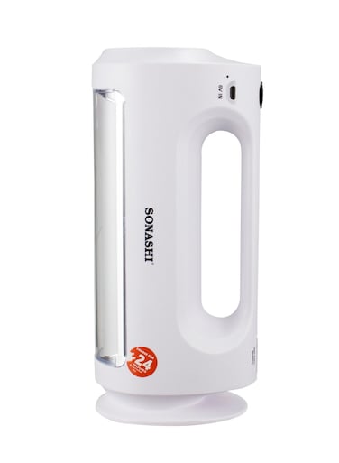 Sleek Design Lantern: This emergency lantern features a white body with a built-in side handle which will help you carry the light anywhere you want. This modern and sleek lantern has an emergency side light and a torch-style light at the top.