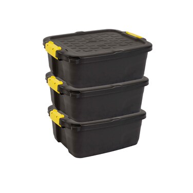 Heavy Duty 24 L Storage Box, 50L x 40W x 20H cm Made in UK, Strata, 3 pcs Pack, HTC-STR-758