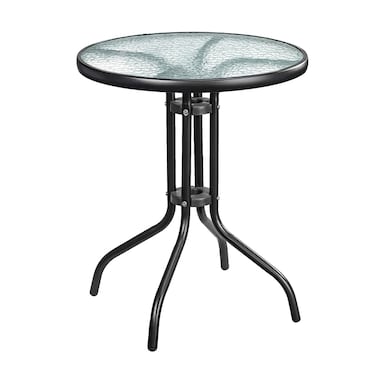 HEXAR® Outdoor Table Round Patio Table Coffee Table Side Table Garden Table Outdoor Indoor Furniture with Metal Frame and Tempered Water Ripple Glass Top for Garden Backyard Porch Deck