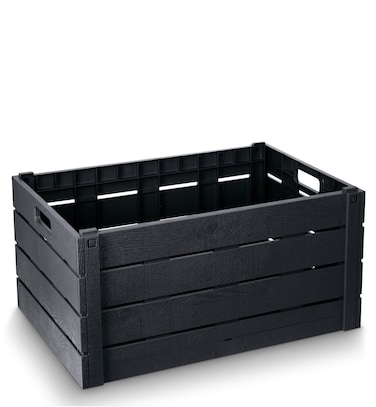 • Made in UK, simple but rustically stylish, this Strata Wooden Effect Folding Crate is ideal for storing home accessories or your recyling materials, so that you can keep everything tidy and neatly organised. It is foldable and stackable, so can be stored away when not in use to save space.The sturdy but lightweight design and convenient carry handles make it a highly practical choice, while the charcoal finish ensures it looks great too.