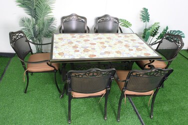 This Yulan dining Set includes 1 table and 6 chairs, meets all of your outdoor furniture needs, adding style to your space without sacrificing comfort. The chairs fit perfectly around the table for backyard family dining, picnics, or lounging poolside with friends, match any decor and suitable for outdoor and indoor use