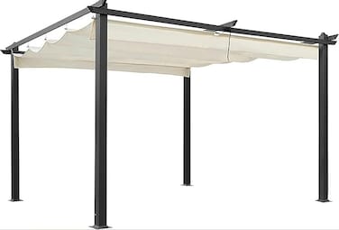 RETRACTABLE TOP: The polyester top of the pergola with PA coating helps protect you from the harsh sun. The slide rail design allows the cloth to slide horizontally by pulling on a drawstring, so you decide how much shade you need throughout the day.