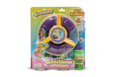 Get ready to launch a stream of bubbles sky high! With this revolutionary design and the pull of a rip cord, you can create a sky full of bubbles. Fill the built-in spill proof tray with Gazillion Bubbles solution, place the flyer on top of the tray, pull the rip cord and watch the flyer launch sky high with a flurry of bubbles! Each Sky Bubbles includes one 4oz. of Gazillion Bubble solution. Appropriates for ages 3 years and up.