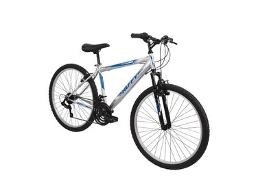 The Huffy Highland mountain bike is equipped with all you need for a great ride from the handlebars to the rear derailleur. This unisex mountain bike has a durable steel hardtail frame in classic silver that rides atop two 24-inch tires. The steel frame is a hardtail frame, meaning it has the added benefit of front suspension to help offer smoother rides over various types of terrain. Stay in control of your pedaling cadence, speed, and overall riding experience thanks to the 21-speeds, front and rear steel linear pull brakes, and all-terrain tires. Get pedaling and get on with your adventures!