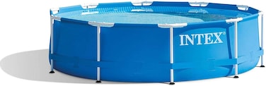 Make a splash in your neighborhood by hosting a backyard pool party this summer with this Intex 10-Foot by 30-Inch Above Ground Swimming Pool. Made with a sturdy metal frame, this above ground pool will make your summer fun and refreshing. This metal pool is an affordable and easy-to-set-up alternative to more complicated steel walled pools. They are also a more durable alternative than most inflatable pools on the market. Measuring 10-Feet by 30-Inches and able to hold up to 1,185 gallons of water, this pool is the perfect size for any backyard fun. Easily fill this above ground pool with the drain plug access that will let you use a garden hose to drain water that is in the pool. It should be used with the Intex 330 GPH Filter Pump, which is not included. The drain plug accepts a garden hose to drain water away from the pool area as desired. Disclaimer: Please review your HOA rules and restrictions before purchasing this product. Not all housing agencies permit private above-ground pools.