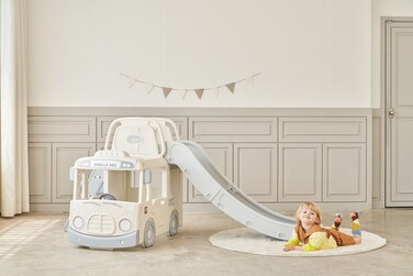 "Beep beep let’s climb aboard the school bus and pretend to go to school. When you get to your school don’t just get off the bus, slide down the bus! Or you can use the bus like a playhouse and play inside with all your friends. It’s a playhouse shaped like a big yellow school bus with a fun slide!Unique design, suitable for children aged 1 - 6 years. Made from premium sturdy plastic. Combination with slide, driving role play and baby room. Non slip safety embossing steps. Melody, sound and light handle. Both slides of doors open and close. Detachable bus saddle. Easy assembly and storage. Product Size: 200W*115L*105H cm (Bus width: 60cm without Slide"