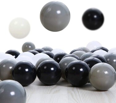 Playmaty 100 Pieces Colorful Pit Balls Plastic Phthalate Free Bpa Ocean Ball Crush Proof Stress For Toddlers And Kids Playhouse Pool Accessories 2.1 Inches White Black Grey
