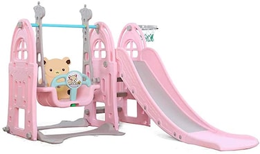 Rainbow Toys - Baby Swing Slide Kids 3 In 1 Household Use Indoor Outdoor (Pink)