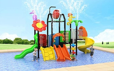 Rainbow Toys, Outdoor Water Park Playground Slide Combination Anti-Rust Material Stainless Steel 7.2 * 2.8 * 4M RW-11085