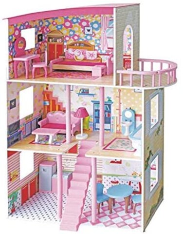 Rainbow Toys - Wooden DollHouse Kit DIY Toy Realistic 3D with Furnitures Birthday Gift For Girl (C)