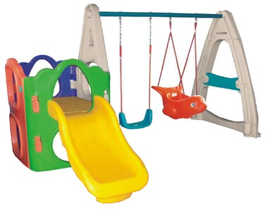 - 1. RBWTOYS Perfect Kid's Playset, especially for younger kids. 2. Made by high quality materials, thick, safe and environment friendly materials. 3. FUN & Attractive Toys for Kids. 4.This Activity Playset includes Slide, Swings, Hide n Seek. Many childs play with this toy at one time.