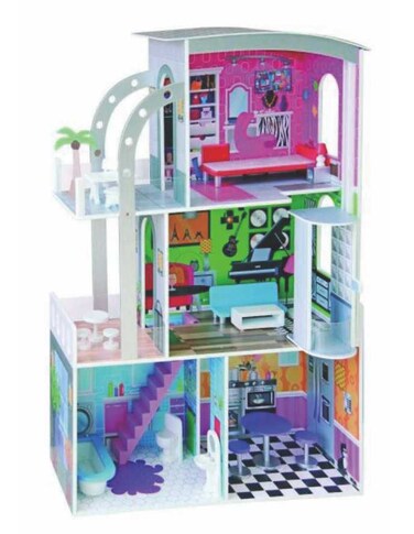 Rbwtoys Premium Wooden Colorful And New Doll House With 2 Floors Set Educaional Toy, Realastic Design For Kids Play Set RW-17568