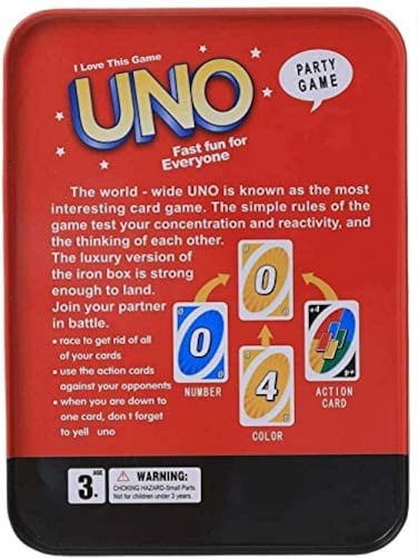 UNO Playing Card Game Deluxe Tin Box Version Great for Traveling and Easy Carrying