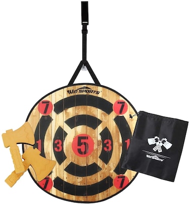 Win Sports Toy Foam Axe Throwing Game, Indoor Outdoor Target Game, Includes Two Axes, One 26” Easy Fold And A Carry Bag