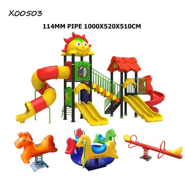 - Xiangyu outdoor playground with different sizes of slides that suit for your children's happiness let your child’s imagination soar as they play on their very own adventure playset! Ideal for children, in which the product will provide the perfect location for your child's physical and mental development. Let your kids spend their hours outside with friends and family. It has a 1 big spiral tube slide, 1 S-slide, and 2 double slides, 1 dome comes with the climbing and 2 ladders separately, with an attractive top covers, colors, and design, the color doesn't fade easily. Xiangyu rocking spring designed to exercise every part of the body and make the children happy and enjoy, Improves your balance, strength, and flexibility, Strengthens your heart, lungs, waist and breath, Suitable for the children from 3-16 years old. Xiangyu Merry-go-round is a common equipment for many park playgrounds. Children enjoy the rotating motion and the playground challenge provided. A merry go round teaches cooperation, as all users must turn the same direction for the desired motion. *Xiangyu 2 person-seesaw is an environmental design, easy to assemble, anti-corrosion, fire-proof, mothproof, easily cleaned-up, professional manufacture, Non-toxic, environmental-friendly material, Non-toxic, environmental-friendly material.