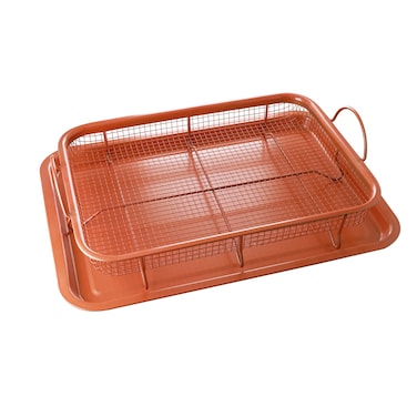 AlHoora, 35X28XH6cm 2 Piece Set Copper Chef Copper Crisper Non-Stick Oven Baking Tray with Crisping Basket with Box