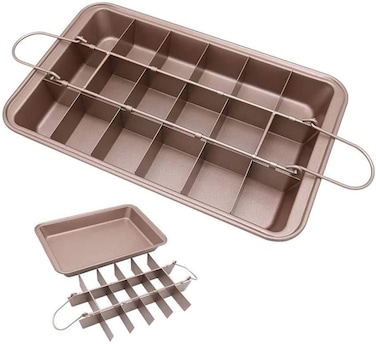 Generic Non Stick Brownie Pans With Dividers, Divided Brownie Baking Tray With Grips, For Oven Baking, Slice Solutions Cake Bakeware, Square Baking Pan With Built-In Slicer, 12 By 8 Inches, Champagne