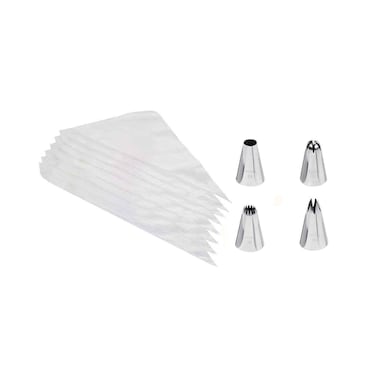 This set includes 12 pieces, including a decorating bag, 8 decorating tips, and 3 couplers. The white and silver colour scheme adds a touch of elegance to your cupcakes.