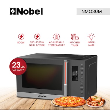 Nobel 23 Liters Microwave Oven Button Control, 60mins Setting Time, 5 Power Levels, Cooking End Signal, Defrost Setting With 1Year Warrenty NMO30D Black