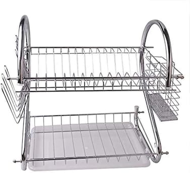- <p>Stainless Steel Dish Rack With Utensil Holder<p>Plated Chrome Dish Dryer<p>Silver Dish Dryer<p>Product Dimensions: <p>Product Description:<p>Dish Drying Rack, 2 Tier Stainless Steel Dish Rack with Utensil Holder, Glass, Cup, Cutlery Holder, and Dish Drainer for Kitchen Counter Top, Plated Chrome Dish Dryer Silver