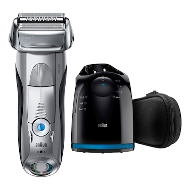 Braun Series 7 7899cc shaver combines closeness and skin comfort without any compromises. Enhanced with Sonic technology designed to read and adapt to your beard, Braun Series 7 contains 4 shaving elements capturing more hair in every stroke to provide a close, comfortable shave and reduce the risk of skin irritation. Extra thin head fits even hardest-to-reach areas along contours, and 5 different shaving modes allow you to choose the prefect settings depending on your skin type and other individual preferences. Equipped with the world only 4-action alcohol-based Clean&Charge station that cleans, lubricates, and dries your shaver at the touch of a button. Braun Series 7 produces exceptional shaving results, while being gentle on the skin.