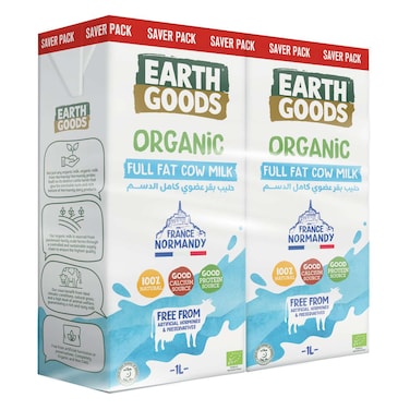 Earth Goods Organic Full-Fat Cow Milk 1L Pack of 2