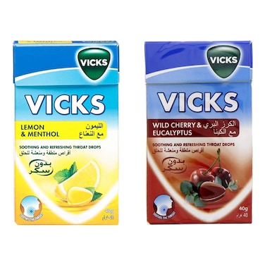 Vicks Lemon Menthol And Wild Cherry Throat Drops Clear 40g Pack of 2