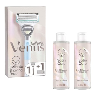 Gillette Venus Delicate Shaving Razor With Blade 2 PCS And Satin Care 2-In-1 Cleanser+Shave Gel