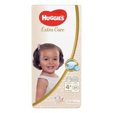 Huggies Extra Care Diapers Size 4+ 10-16kg Jumbo Pack 64 Diapers
