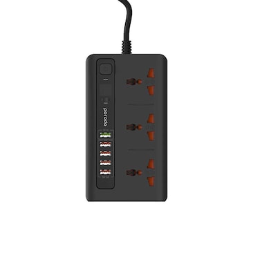 Porodo Power Socket Strip, 4 Usb Port 3.4A + 1 Quick Charge 3.0 With 3 Universal Power Sockets 10A, Independent Power Switch With Timer,Sockets Usb Hubs,Charging Station,Over Heat Protection - Black