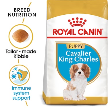 Whats more, ROYAL CANIN Cavalier King Charles Puppy contains exclusive, tailor-made kibble. The exclusive formula contains a calcium chelator which helps to reduce the likelihood of tartar formation on your dogs teeth and gums.