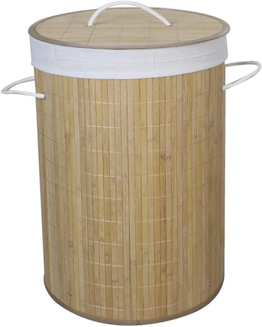 Keep your bedrooms and bathrooms tidy and clutter free with this large, stylish laundry basket. It has a round design with a metal frame and detachable inner lining to protect contents. The removable lid keeps contents private and the basket folds for storage. Made from natural bamboo.Add a touch unique style to any of your household rooms with this eco-friendly natural bamboo laundry basket. Assembly is required, laundry basket can also be folde down for easy storage. Material - Natural Bamboo.