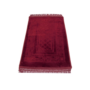 Fabienne Embossed Prayer Rug Anti-Slip Velvet Top Prayer Mat Maroon 80 x 120 cm