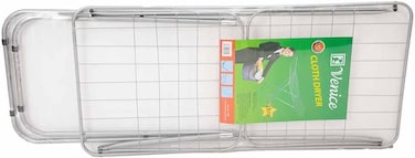Venice Aluminum Cloth Dryer.About Product:-Made of rust-proof and weather-resistant stainless steel, this clothesline can be used both indoors and outdoors. There is a non-slip plastic protective cap on the floor for added stability. This clothesline grows when fully opened. Two laundry can be stored in the two-tiered drying space. Two wings for hanging multiple clips on the wings to hang small pieces of clothing such as socks, underwear, handkerchiefs Medium rack, jeans, towels, blankets, and comfortable to dry heavy materials such as konse, perfect for placing towels and pillows. The underside of the legs is also protected by a plastic lid, which prevents damage to the floor. This air dryer can be folded flat and left alone. When not in use in a confined space, it can be folded down. This avoids cluttering the place and facilitates compact folding storage. Stainless Steel Pipe Products Suitable for both indoor and outdoor Drying of heavy materials comfortably Excellent resistance to rust and weather Folds easily and holds two loads when not in use Laundry.