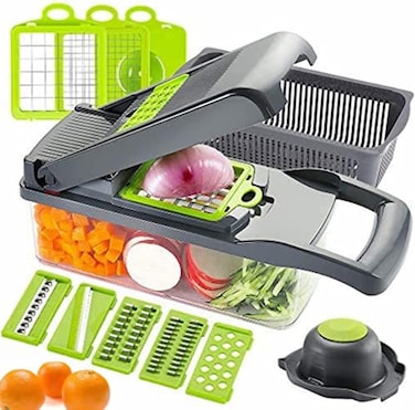 Generic 14-In-1 Multifunctional Vegetable Chopper With 8 Stainless Steel Blades, Onion Chopper, Fruit Slicer Cutter Salad Potato Carrot Garlic, Manual