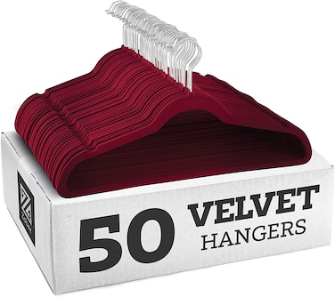 - 50 attractive burgundy velvet nonslip hangers featuring 360-degree swivel, shiny chrome hooks, and notched shoulders that will make hanging clothes a simple pleasure!