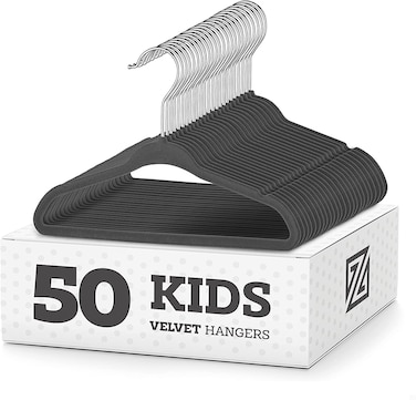 - Set of 50 luxurious, Grey Kids velvet clothes hangers perfect for Kids jackets, pants, shirts, dresses, and more. The velvet clothes hangers are also perfectly sized for hanging women's adult delicates such as bras, nightgowns, and camisoles.