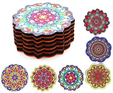 - Drink Coasters, Wooden Coasters for Office, Restaurant, Living Room Decor, Housewarming Gift, Decorative Mandala Print Design Coaster Set for Drinks,Glass Cup Holder Coffee Mug Place Mats (6)