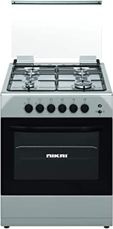 Nikai Gas Cooking Range 4-Burner With Oven Size 60 X 60 Cm Silver Color With Silver Top And Glass Lid Model- U6062Fs, 1 Year Warranty (Installation not Included)
